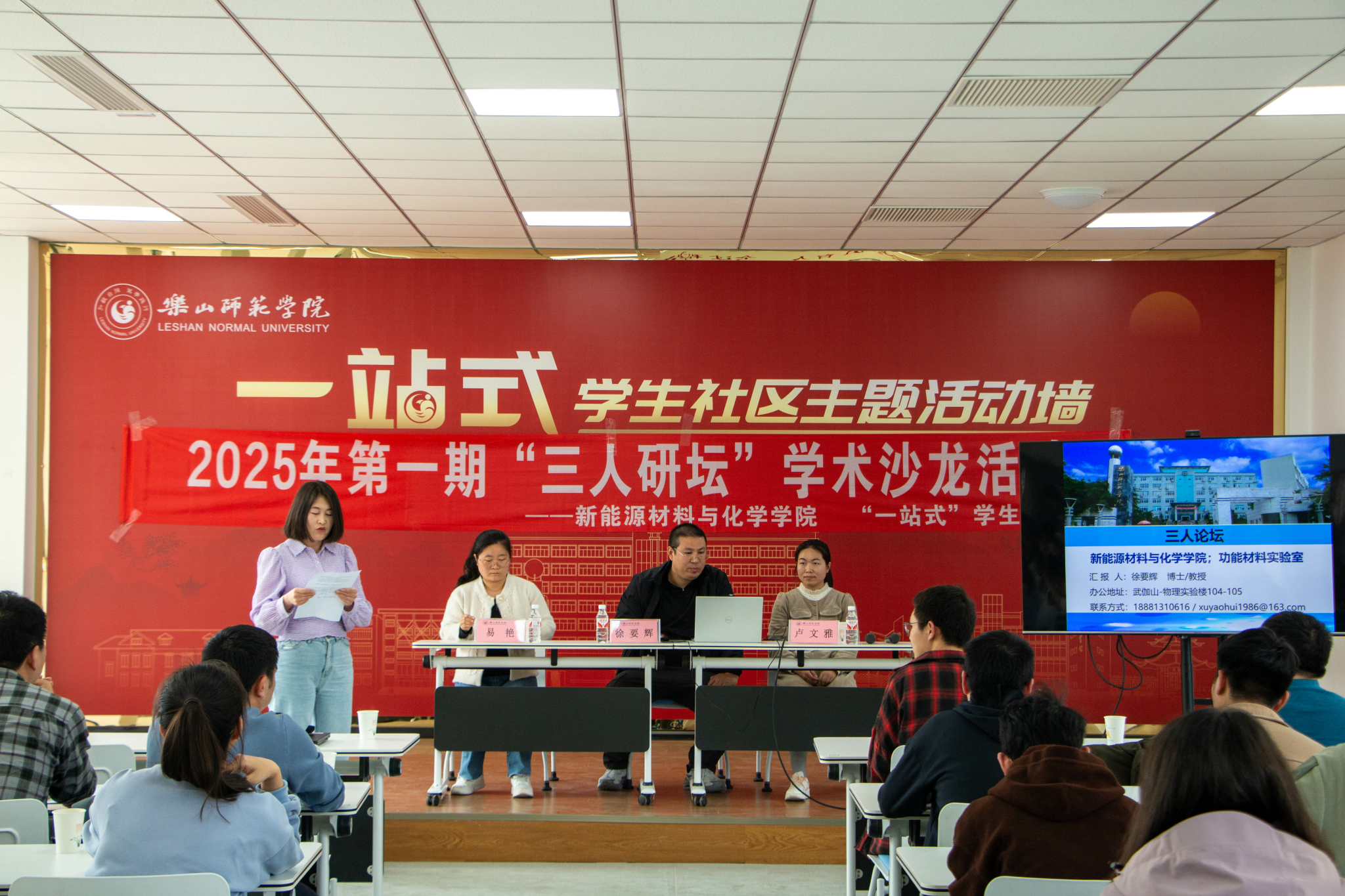 本网讯(文/冉茂裕 图/茹婧)2025年3月27日,新能源材料与化学学院在“一站式”学生社区召开“三人研坛”学术沙龙,聚焦材料化学前沿领域,吸引了全校多名师生参与。活动以“材料化学前沿交叉与可持续发展”为主题,通过专家报告与圆桌研讨,为师生搭建了跨学科交流的创新平台。